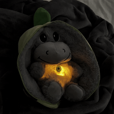 Now the relaxation can begin! Snuggle up with your plushie, breathe along with its calming rhythm, and drift off into a peaceful sleep.